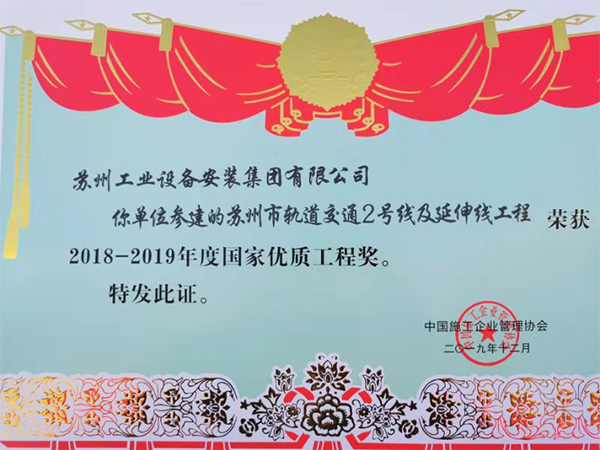 苏州轨交二号线全长42.5公里,设车站35座,公司承建其中“山塘街站-火车站站”的主线车站机电安装及装修施工。主要施工内容包括:通风与空调系统、给排水系统、消防系统、动力照明、供电系统等,工程造价约6825万元。